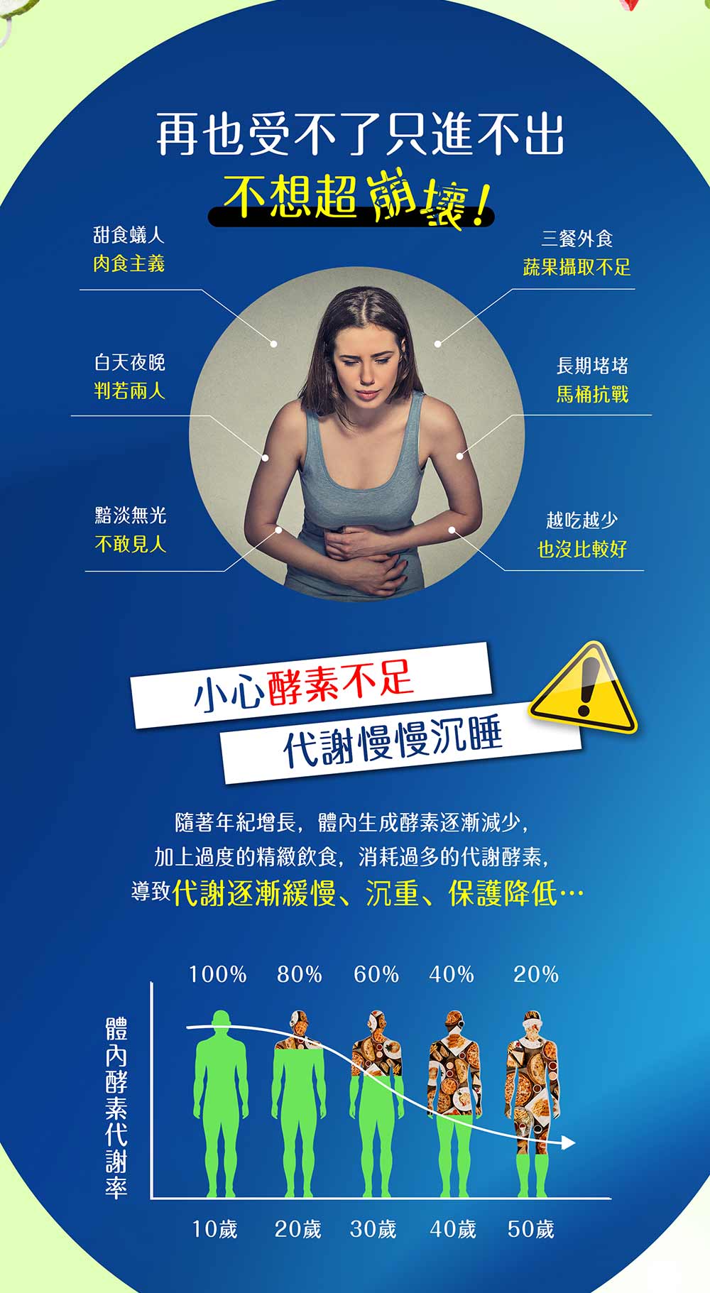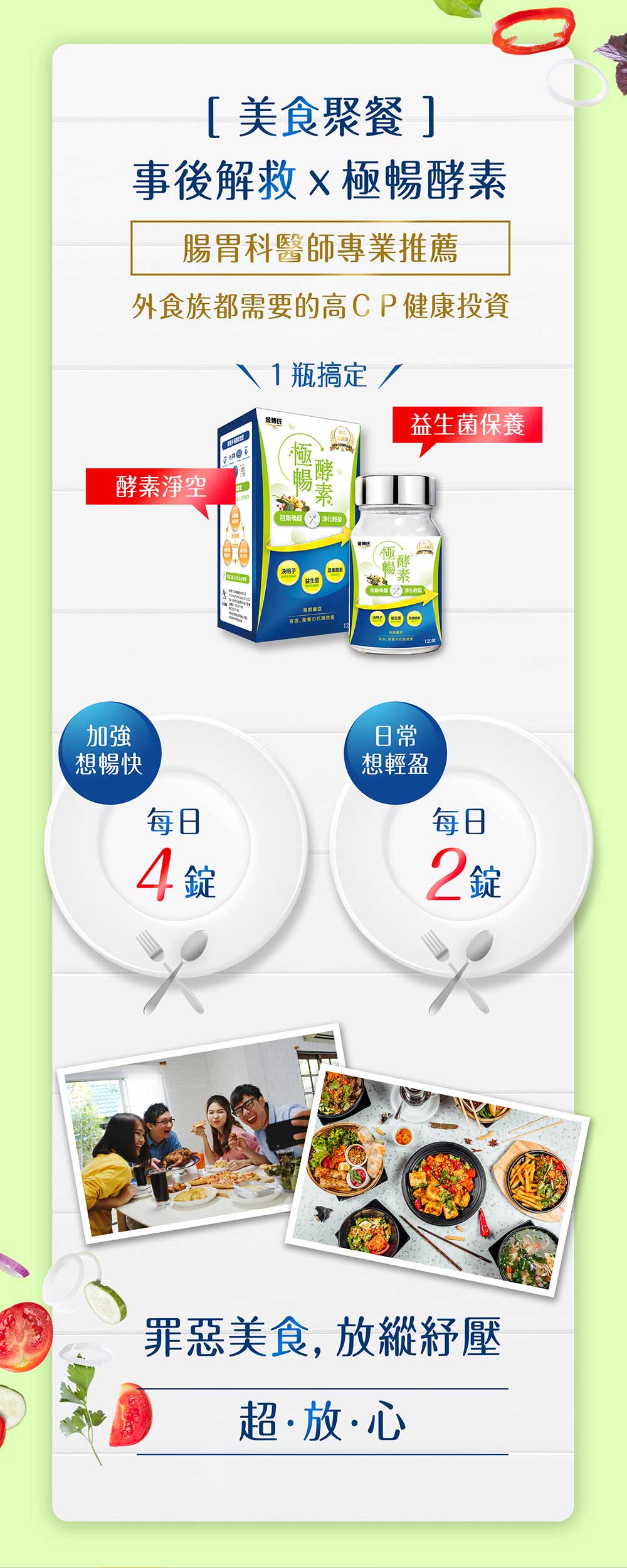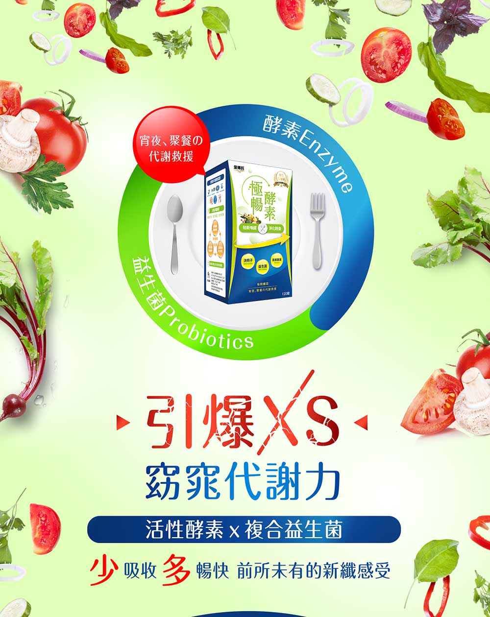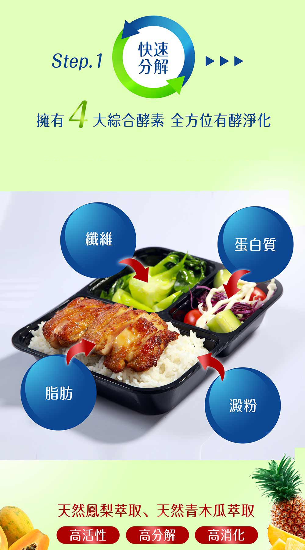 綜合蔬果萃取物:鳳梨萃取物、糖化酵素、纖維分解酵素、青木瓜萃取物