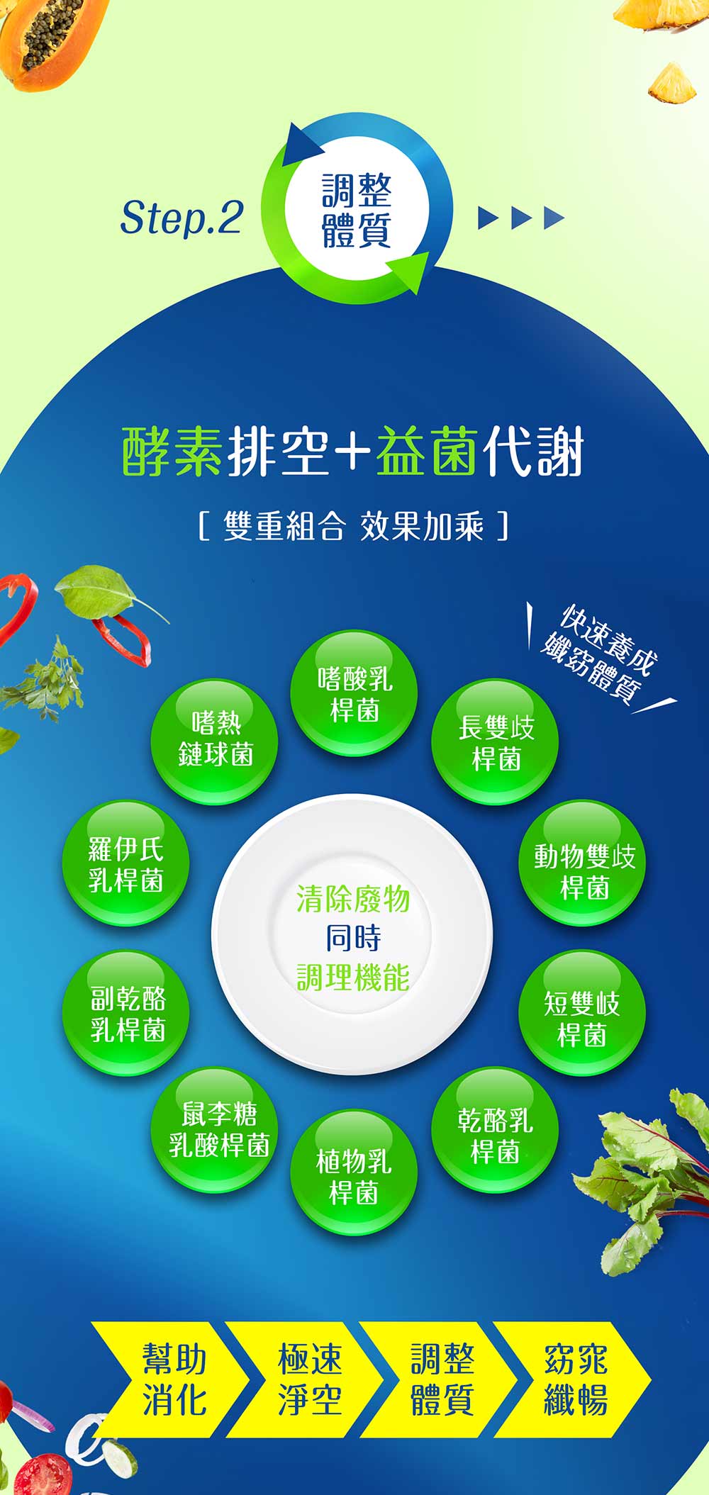 綜合益生菌:嗜酸乳桿菌、長雙歧桿菌、動物雙歧桿菌、短雙岐桿菌、乾酪乳桿菌、植物乳桿菌、鼠李糖乳酸桿菌、副乾酪乳桿菌、嗜熱鏈球菌、羅伊氏乳桿菌