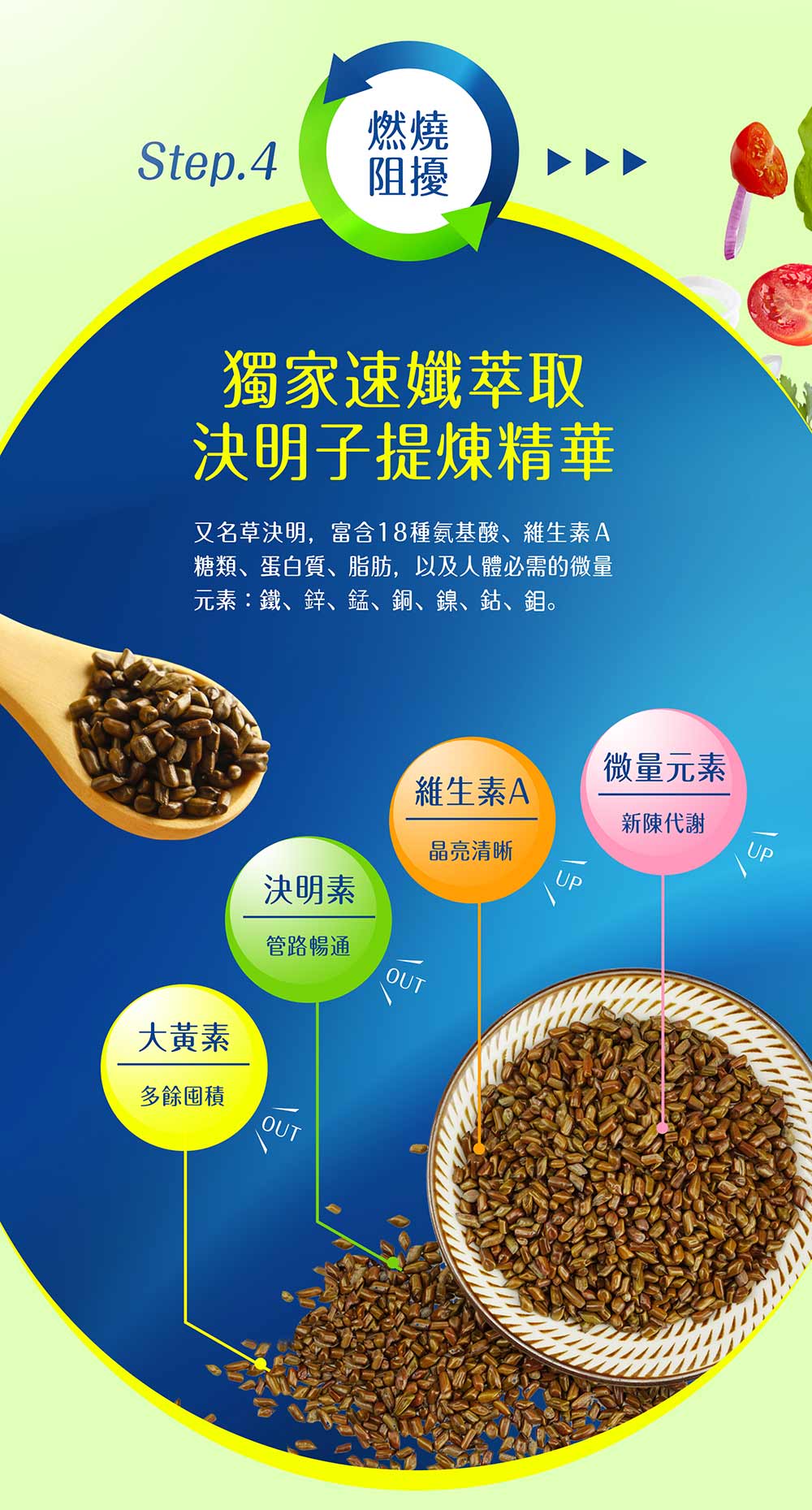 羊角豆萃取物、決明子萃取物、海洋深層水萃取粉、大麥草粉、蘆薈粉