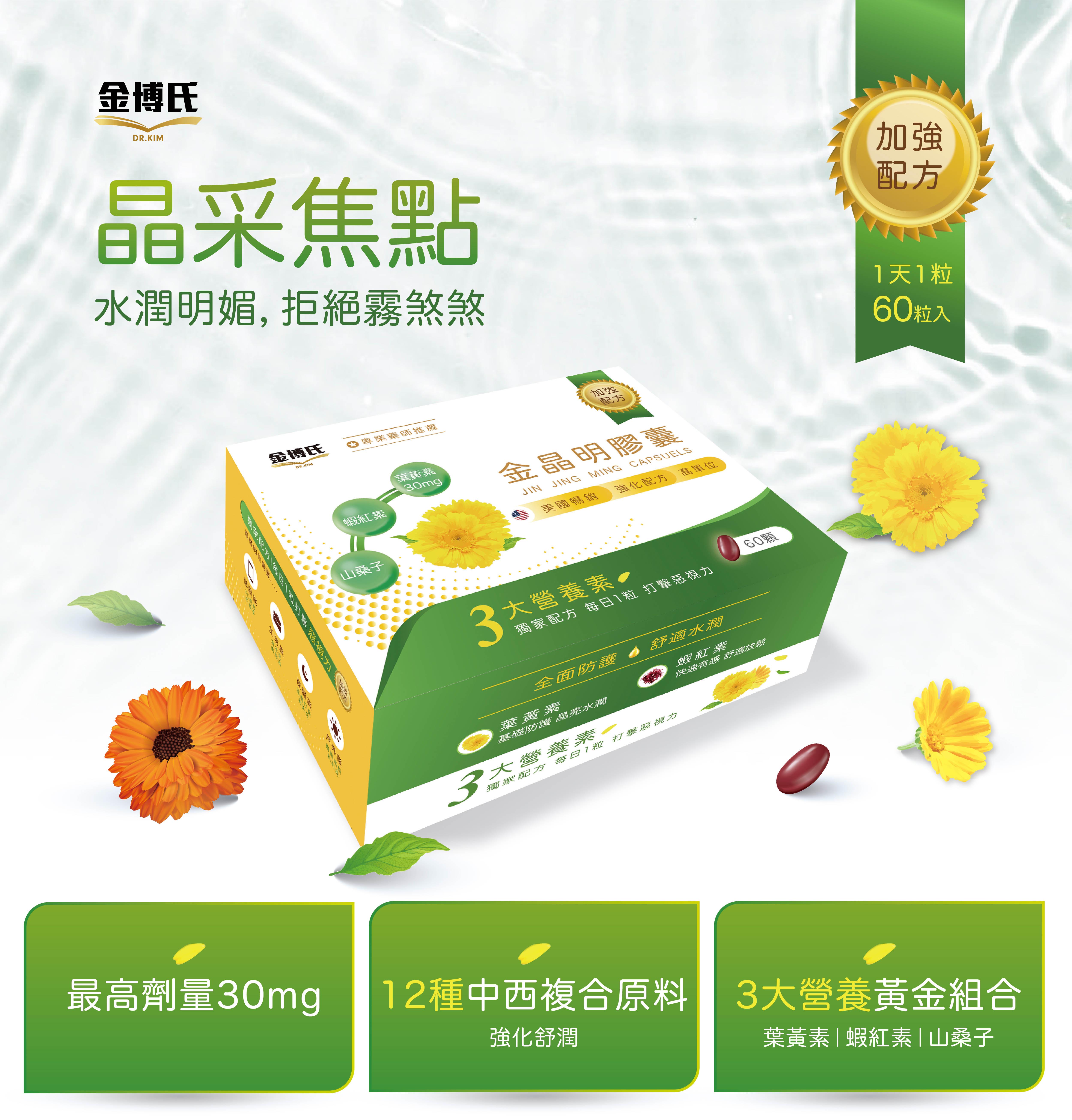 Dr.Kim 金晶明|60粒|高單位30mg葉黃素 蝦紅素 山桑子