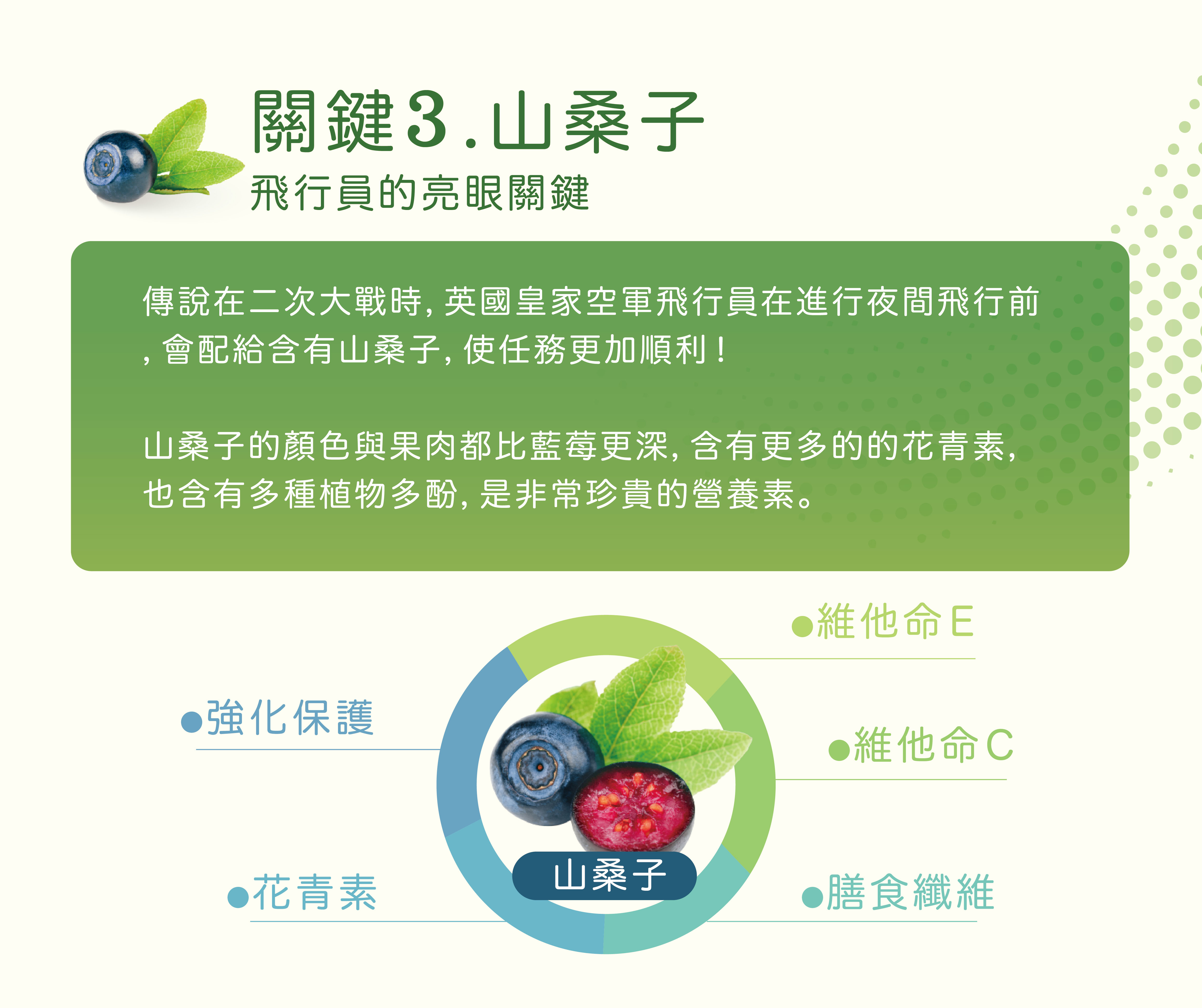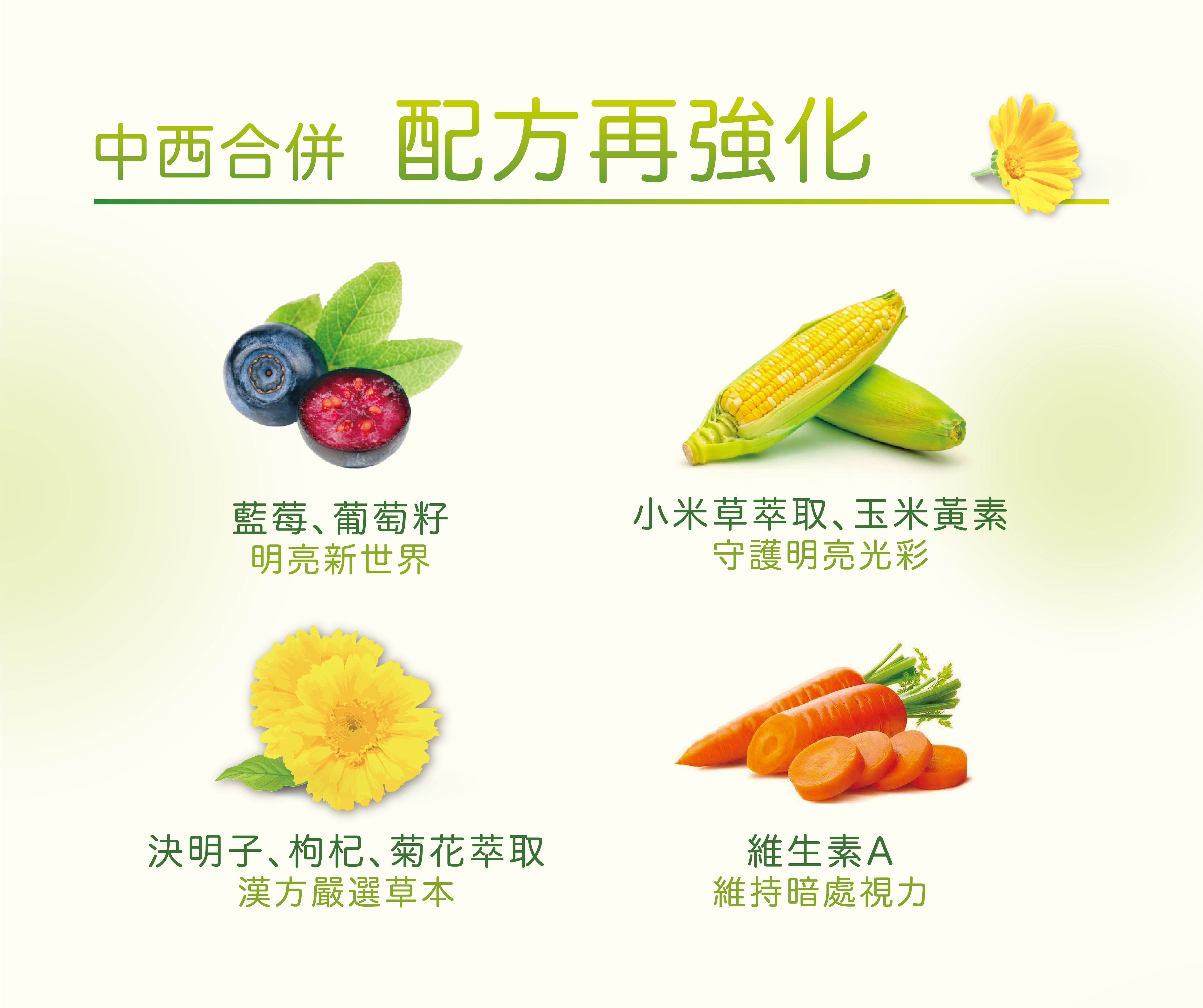 ●山桑子、藍莓、葡萄籽、決明子、枸杞、菊花等萃取